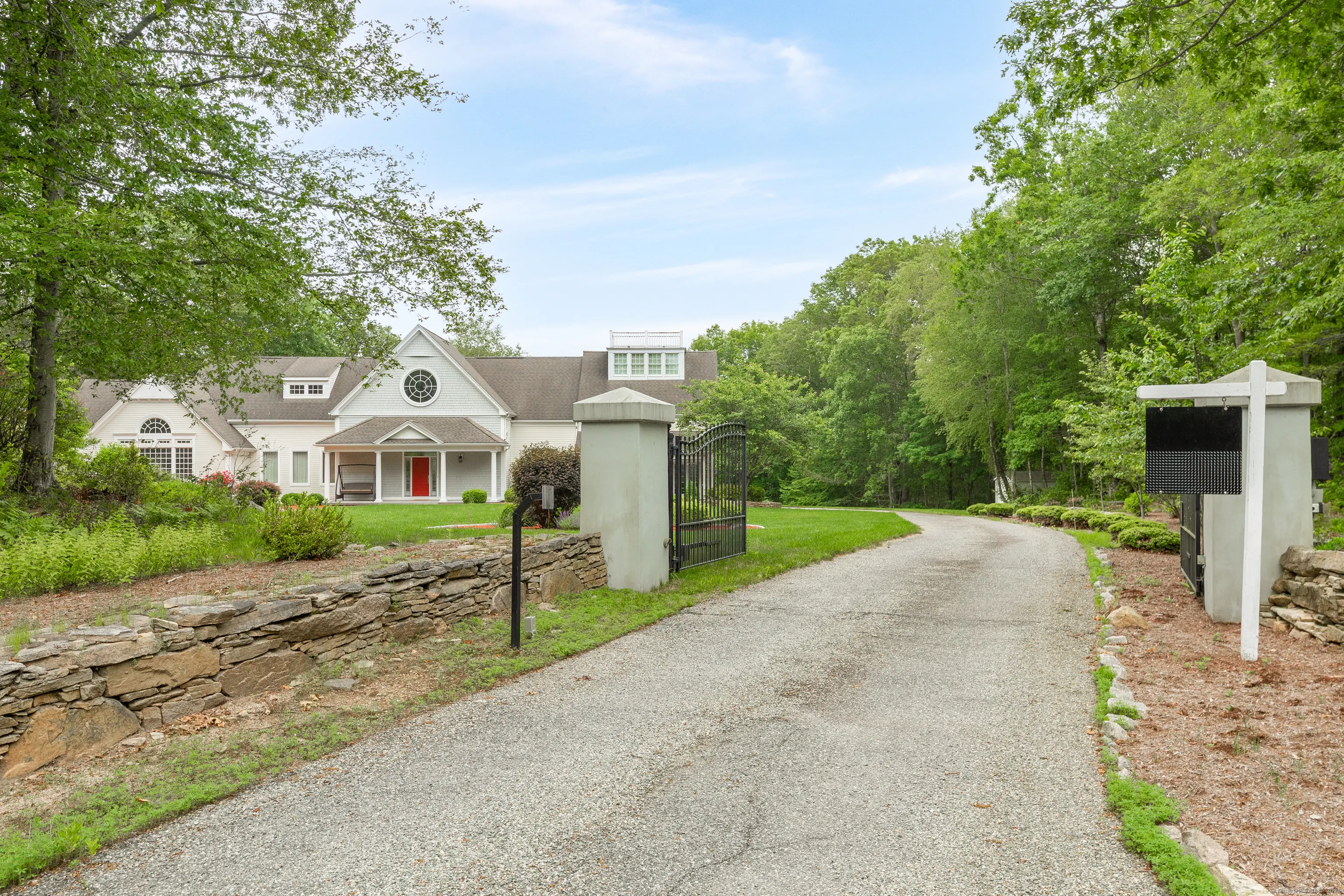 STUNNING COUNTRY ESTATE. Drive back off the road through private entry gates into a park like setting and discover this spaciously designed elegantly appointed home. There's a beautiful entertaining area that spreads out across the main floor including a living room and dining room that flow from one to the other accommodating large furniture and ready to highlight your most precious collections with fabulous built-ins, fireplace and soaring cathedral ceiling in the living room and a particularly lovely "enameled-tin" tray ceiling in the dining room. Enter the kitchen of your dreams with fantastic center island, top of the line appliances, wet bar and butlers pantry and inviting family room area, another fireplace, dining area, and a view of the waterfall over the stone garden outdoors. Main floor also offers bedroom with private bath and walk-in closet. The Primary Bedroom is a large suite of rooms including a warm fireplace and sitting area and is located on the 2nd floor along with 2 more bedrooms and an office area. The lower level offers the richly designed wine tasting room, a concessions/full bar area outside of the home theater. This elegant private estate is located 15 min to Westerly Town Beach, minute to I-95, to casino.