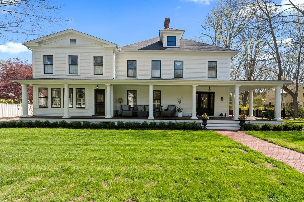 CLICK ON REEL ICON FOR 3D TOUR. In the heart of Essex Village! This iconic home with its welcoming front porch offers a rare opportunity for a family compound or multi-generational living just steps from shops & restaurants. Inside, a gracious foyer leads to bright, well-proportioned rooms. The parlor opens to a cozy family room with a gas fireplace and Riverstone flooring. French doors connect to the formal dining room perfect for entertaining. The chef's kitchen includes a Wolf 6-burner range, granite countertops, custom cabinetry, and casual dining space. A butler's pantry with Sub-Zero fridge adds extra prep space and storage. The mudroom offers lockers, cubbies, shoe storage, and a half bath deal for busy households. Upstairs, the spacious primary suite features dual walk-in closets, a luxurious ensuite bath with double vanities, and a makeup area. Three additional bedrooms include one with a private bath, two with a shared bath, and a second-floor laundry room with folding counters and custom cabinetry. French doors lead outside to a custom bluestone patio and beautifully landscaped grounds perfect for relaxing or entertaining. The detached carriage barn includes a heated, epoxy-floored 2-car garage and a finished upper level with full bath and HVAC ideal for a guest suite, office, or studio. Additional features: full dry basement, multi-zone HVAC, automatic generator, and walk-up attic with 10' ceilings. Potential to restore a first-floor in law suite.