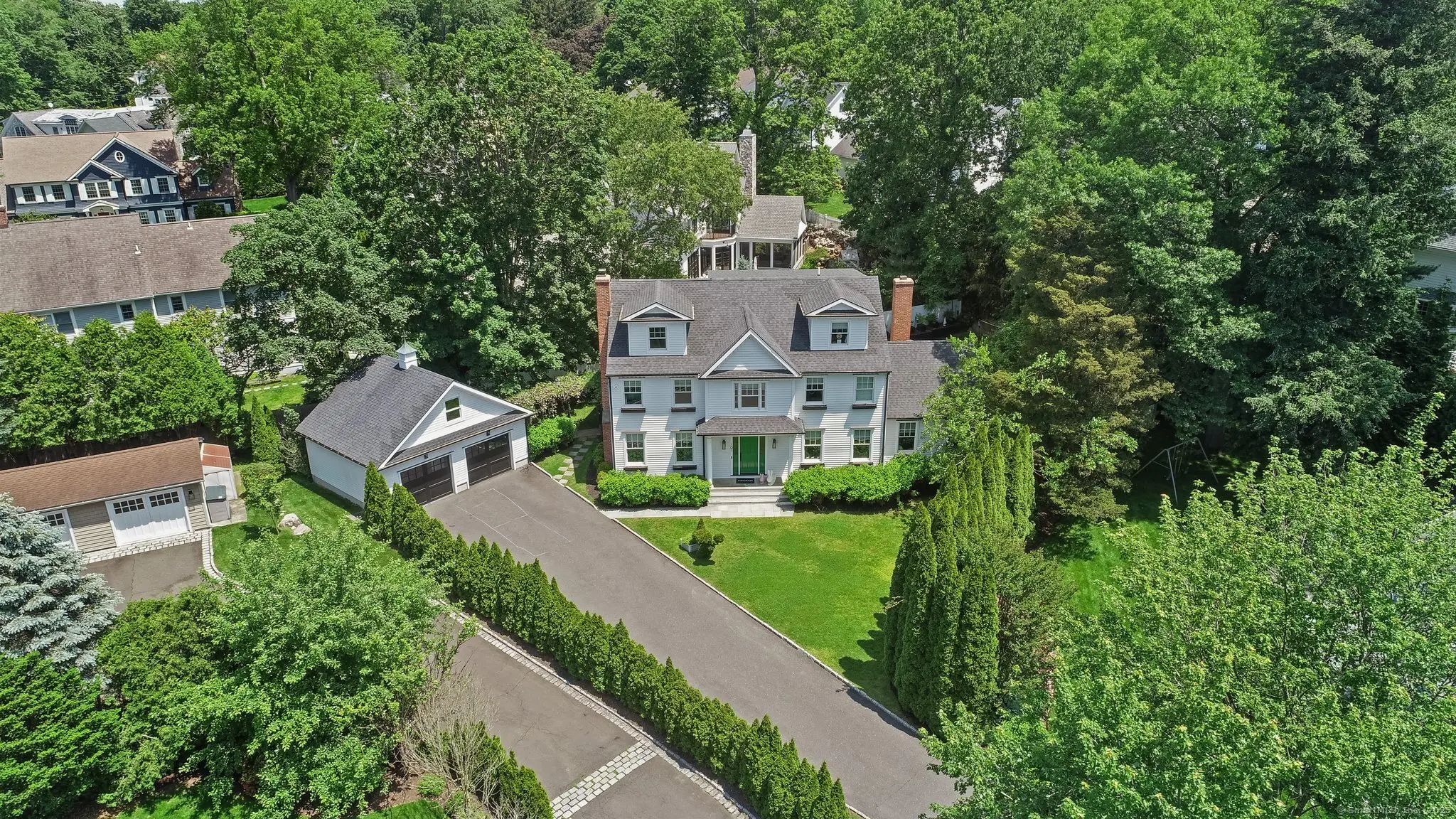 Experience the lifestyle of Riverside in this beautifully renovated 6-bedroom, 4.1-bath home. Close to schools, minutes to train, beach, and Old Greenwich village. With over 5,000 sq ft and $600K in recent upgrades, this turn-key home offers a vaulted family room with Palladian windows and fireplace, elegant living and dining spaces, and a gourmet kitchen with Italian milk glass countertops, double Viking ovens, and premium appliances. The upper level includes a serene en suite primary, three additional bedrooms, and a flexible-use bonus room ideal for an office or nursery. The finished, walk-out lower level features a bedroom, full bath, media room, wet bar, second laundry, and a private room with closet-perfect as a nanny or in-law space. Additional highlights include a spacious mudroom, detached garage with home gym, EV charger, central air, and curated designer finishes throughout. Enjoy coastal living close to everything in one of Greenwich's most desirable neighborhoods.