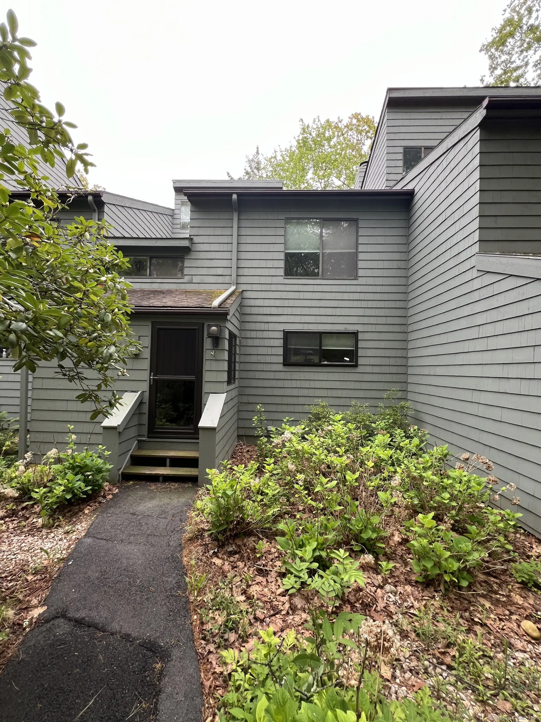 Hearthstone model in small cul-de-sac. Living room has field stone wood burning fireplace. The remodelled kitchen has hardwood flooring & stainless appliances. The primary bedroom has a vaulted ceiling and full bath. The finished attic is accessed from the primary and has multiple uses, i.e., office, yoga, play room, etc. Two other bedrooms share another full bathroom on this level. Deck has been expanded and is ready for grilling season. The shed has been enclosed as a mudroom and is perfect for storage, etc. On the west side of the property, this unit is closer to the indoor pool, tennis courts, exercise room and the stables, garden plots and dog run.