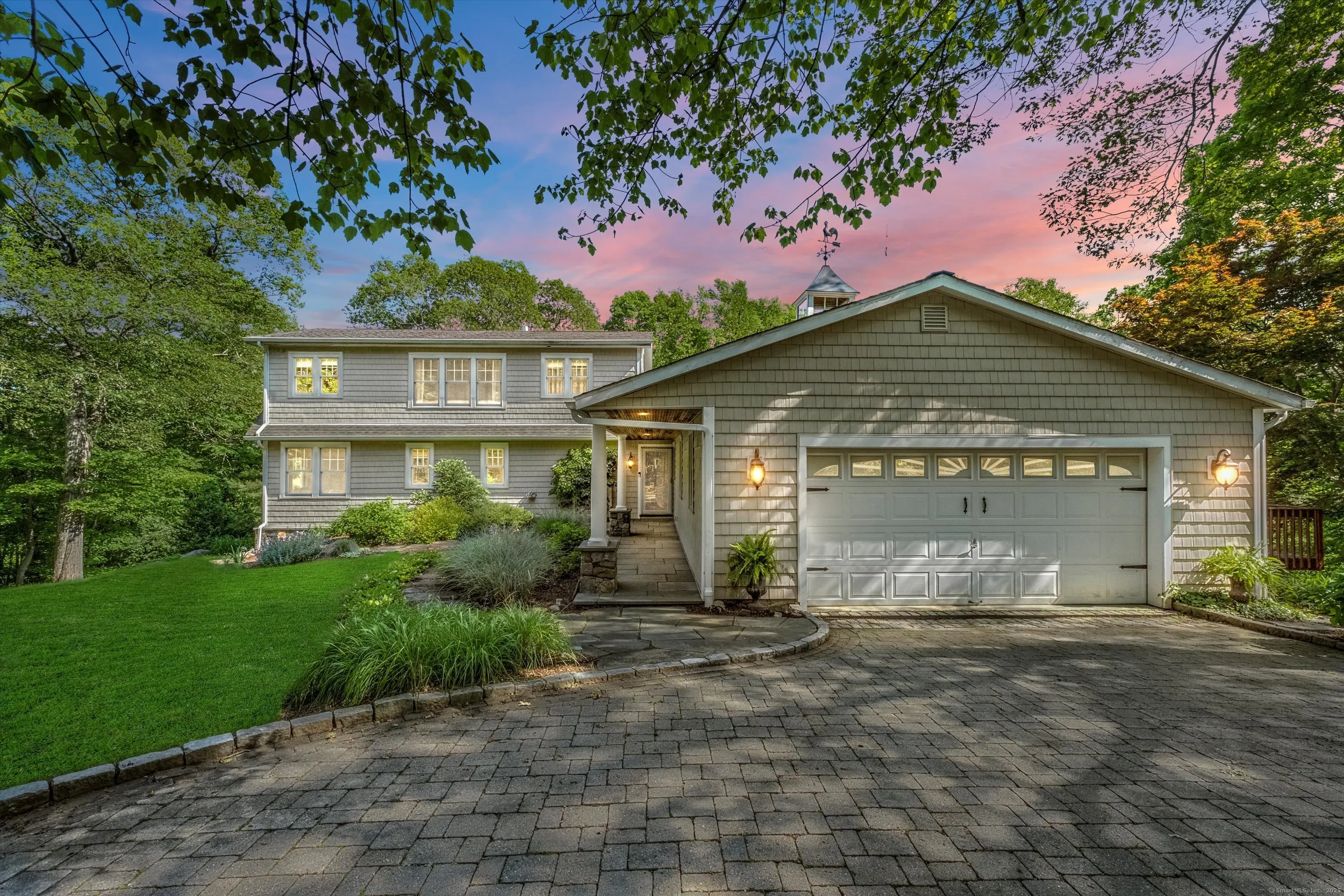 GET INSTANT EQUITY! Discover this exceptional residence nestled in a tranquil, elevated setting surrounded by 42 acres of open space + direct access to beautifully maintained hiking trails. Only a mile to shopping, dining + entertainment in coveted Ridgefield Village Center + Connecticut's Cultural Center. This thoughtfully designed home blends casual ambiance w/ modern comforts, and features hardwood floors, crown molding and a neutral color palette throughout. Enjoy cooking in the white kitchen w/ open layout, breakfast bar, granite countertops, tile backsplash + SS appliances that flows seamlessly into the dining area w/sliders to the large deck beyond. The spacious living room w/large picture windows is the heart of this home: ideal for relaxing, entertaining friends, or playing games. Need to work from home? The home office with French Doors provides ample space + privacy. The convenient mudroom located off the garage entry features a sink + tile floor w/ a true North Star inlay adding a unique touch. Two well-appointed bedrooms, one w/ an en-suite bath, + a full hallway bath completes the main level. Upstairs, the expansive primary suite is a private retreat complete w/ sitting area, stone gas fireplace, vaulted ceiling, walk-in California closets, + a luxurious bathroom offering granite counters, dual sinks, a deep soaking tub, + a tiled shower. Open the French door to the private balcony + drench yourself in the warmth of the morning sun.
