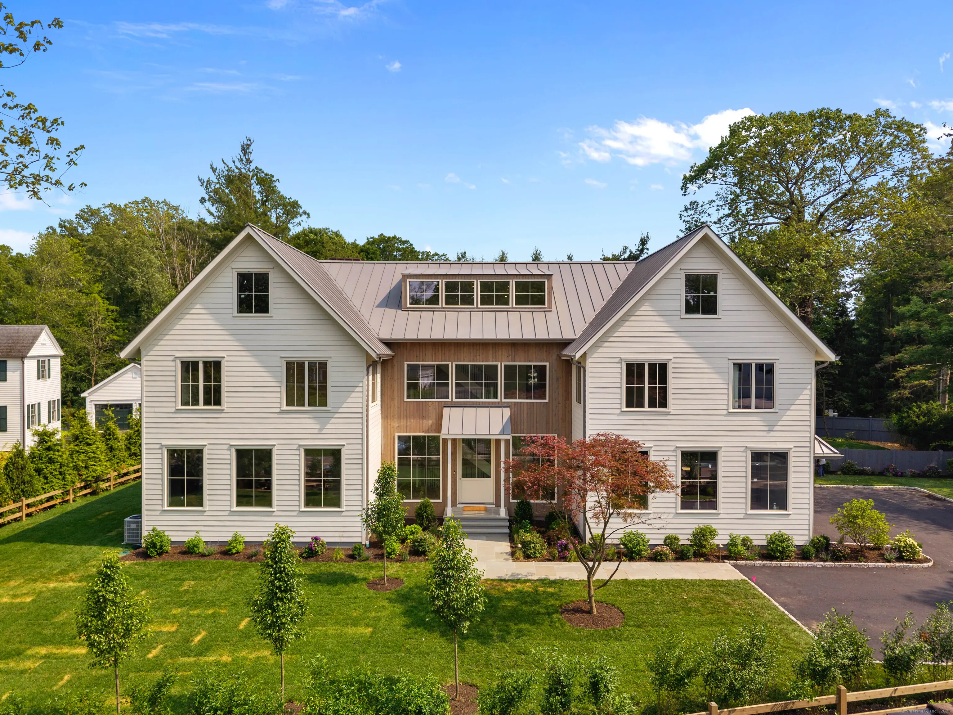 Magnificent move-in ready new construction brought to you by Sound Home Builders. Centrally located in the heart of Westport's coveted Long Lots, Hunt Club and Greens Farms neighborhoods. Elegant design and finishing detail, soaring ceilings and master craftsmanship throughout. Oversized European windows and doors fill the home with natural light. The kitchen features custom cabinetry, warm hues, designer lighting, gourmet appliances and spacious layout. Arched doorways grace a holiday-sized dining room with full wet bar, adjoined by the awe-inspiring living room with serene backyard views and beautiful wood burning fireplace. Convenient first floor guest bedroom and full bath. The large and open primary suite showcases a breath-taking cathedral ceiling and spa-like setting. The walkout basement includes 9' ceilings, an au pair's bedroom and full bath, a generous amount of multi-functional space, a large gym, plus room for a home theater, game room or bar area. Oversized doors open to a large patio overlooking the heated gunite pool, adjoining bluestone patios and outdoor fireplace - surrounded by flat lawn, mature trees, colorful plantings and full fence enclosure. Three-car garage has ample room for storage.