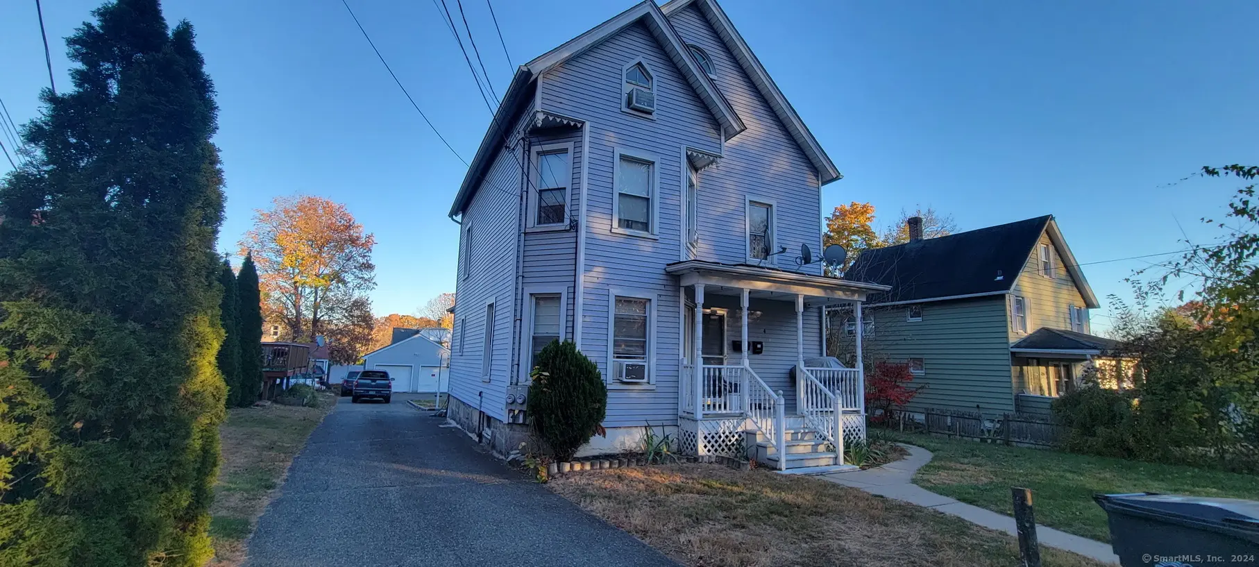 2 Family on level lot, in good condition, detached 2 car garage. Large 1st floor unit in good condition, eat in kitchen, living room, 2 bedrooms and large bathroom, laminate floors through out, also access to full basement. 2nd floor unit in average to fair condition, with eat in kitchen, 2 bedrooms, living room(being used as 3 bedroom), small bathroom and walk up attic in with laminate and carpeted floors. Each unit has laundry hook ups. Near exit 5, I-84 and on dead end street.