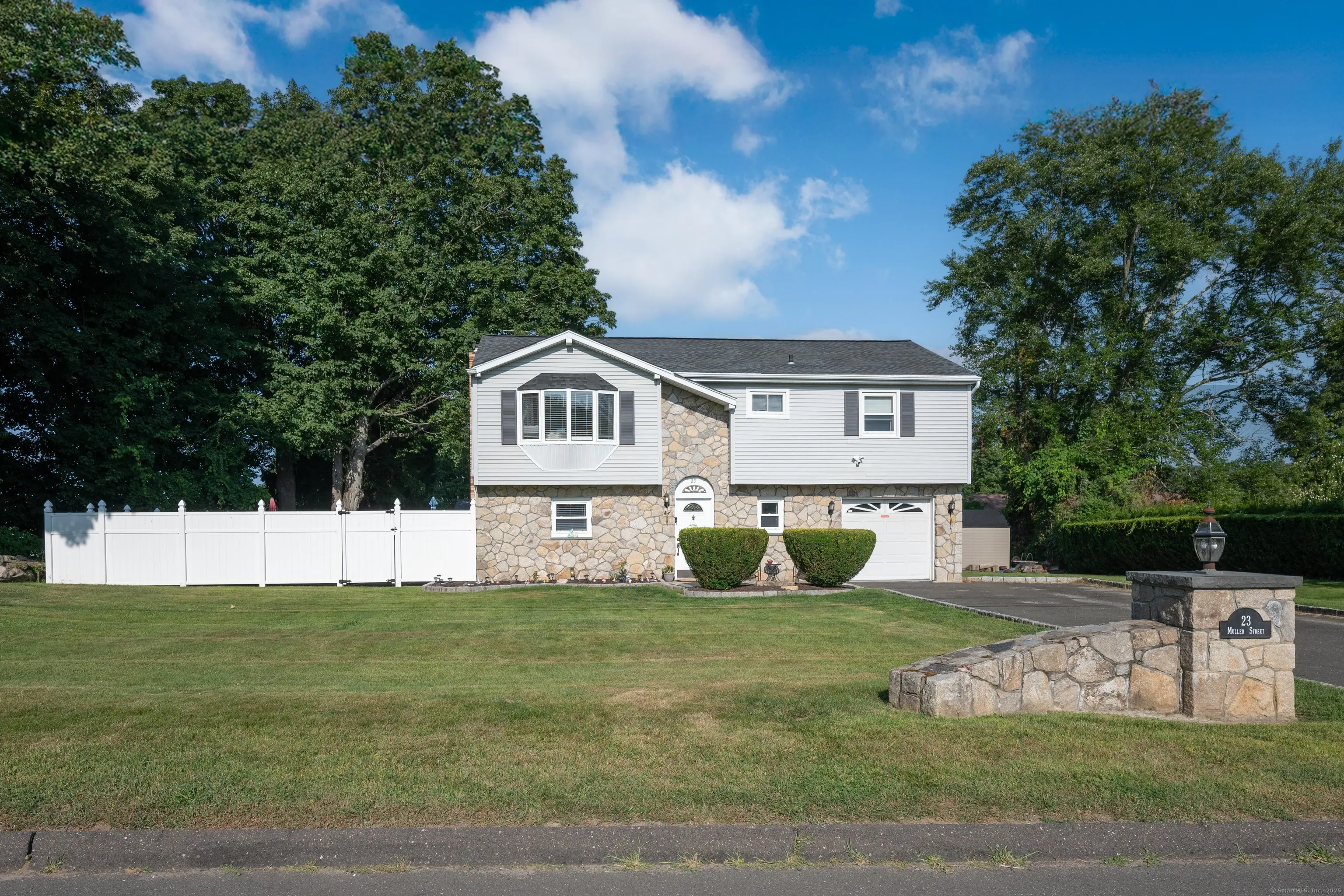 HIGHEST & BEST OFFERS DUE TUESDAY, 8/26 BY NOON! Finally - the home you've been waiting for! Mint-condition and move-in ready, this 3-bedroom Hi-Ranch is tucked away on a quiet street in New Fairfield's sought-after Ball Pond neighborhood. The unique floor plan offers generous living space right from the main entry level, featuring a den, family room, laundry, full bath, and convenient access to the attached garage. Upstairs, enjoy an updated kitchen with newer stainless steel appliances, granite countertops, and a striking tile backsplash. The kitchen flows seamlessly into the dining room and spacious living room with gleaming hardwood floors-also found in all bedrooms. The full bath on this level includes private access from the primary bedroom for added ease. Step outside to your own backyard retreat with a freshly painted decking (upper and lower), stone patio, above-ground pool, and level, landscaped yard-ideal for summer fun, entertaining, and everyday relaxation, and also includes a shed for yard storage! Efficient heating supplied by propane that also feeds a fireplace insert and the gas grill on deck. Enjoy the heated 1 car attached garage! This home perfectly blends comfort, style, and a wonderful setting to create lasting memories for years to come.