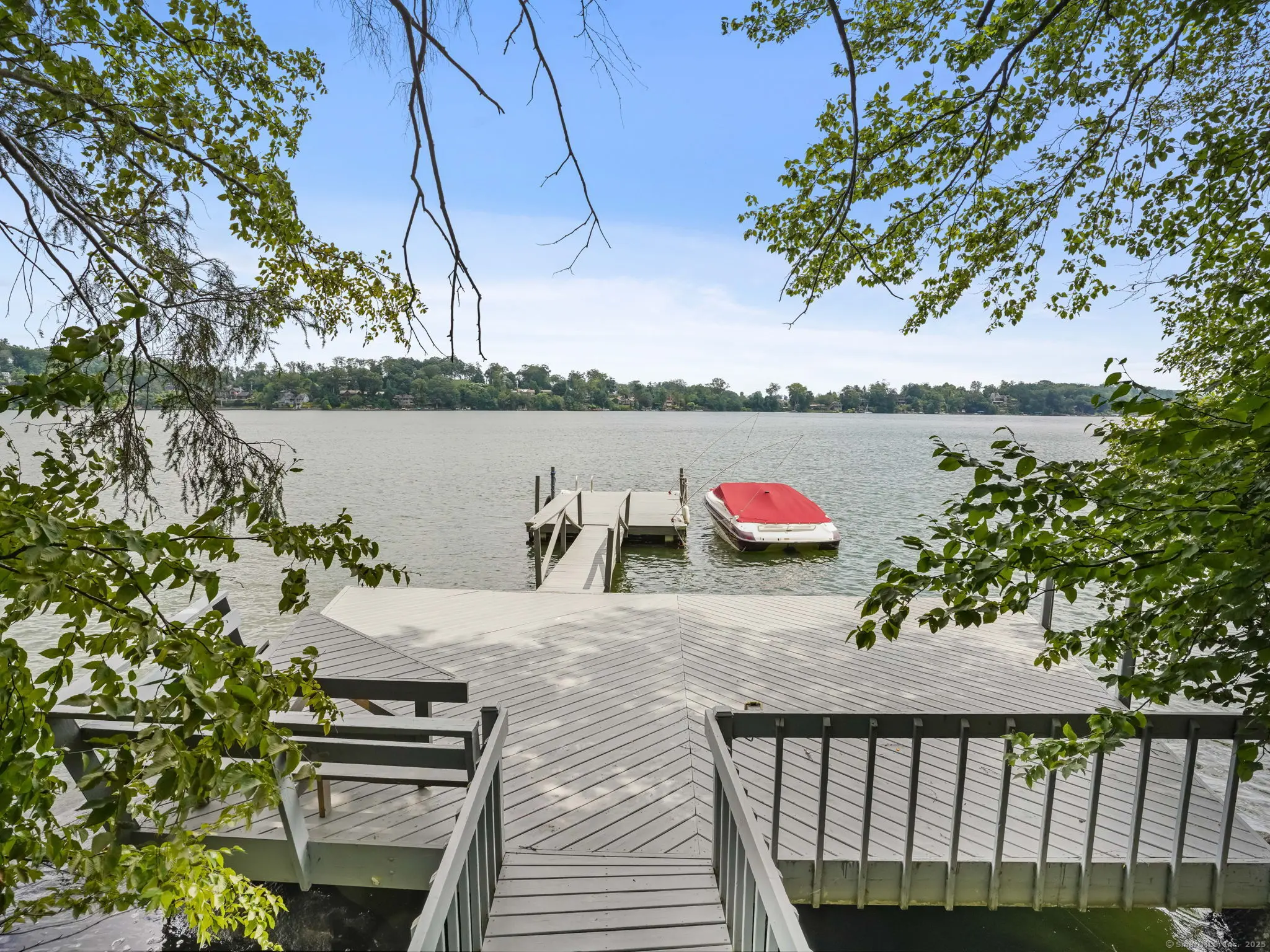 One-of-a-Kind Lakefront Retreat on Candlewood Lake - 14+ Acres of Pure Privacy & Panoramic Views. Perched high above Candlewood Lake on over 15 acres of pristine woodland, this truly exceptional lake cottage offers an unmatched combination of direct waterfront access, total privacy, & sweeping 180-degree lake views. The home is a nature lover's dream. Meander down a private wooded trail & steps to your secluded dockside oasis. Lovingly maintained by its stewards, the home exudes warmth & charm. A wraparound deck provides multiple vantage points to soak in the breathtaking scenery. Inside, the layout is thoughtfully designed to highlight the views from nearly every room. The family room features walls of windows that bring the outdoors in. The dining room boasts a stunning stone fireplace & a large picture window overlooking the lake. The Kitchen, Laundry, a bedroom & full bath complete the main level. Upstairs, you'll find a Primary with its own full bath & private balcony. A second bedroom completes the upstairs, which enjoys its own balcony with the best views in the house! Recent upgrades include a newer roof, fresh paint, & updated mechanicals-this home is move-in ready. The offering includes the main home on 4.31 acres, a neighboring 3-acre parcel, and an additional 7.11 acre lot providing endless possibilities for expansion, or simply enjoying the untouched natural beauty. This is more than just a home-it's a lifestyle. There is truly nothing else like it on the market.