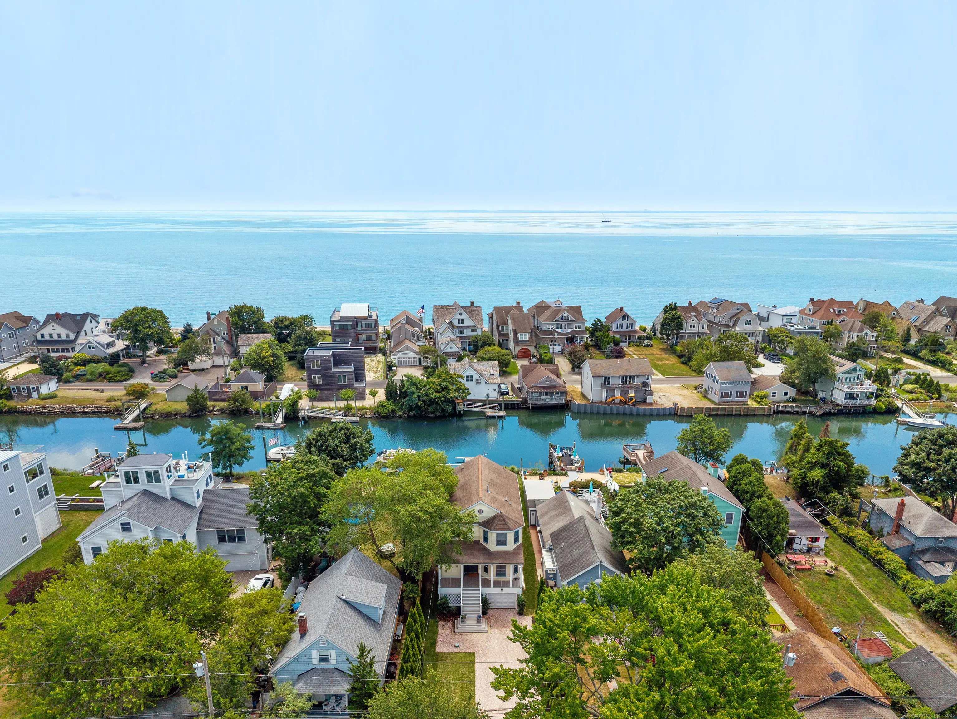 Set in one of Fairfield's most beloved waterfront communities, 73 Old Dam Rd is the perfect blend of contemporary style and laid back coastal living with Dock, Private Beach Access, & calming water views of the Creek and Long Island Sound. Recently and tastefully renovated, this home offers a light and bright open floor plan. You'll love the new kitchen featuring high end appliances and custom cabinetry which flows effortlessly into the Great Room with fireplace and Dining Room. An ideal home for entertaining, there is a wet bar and multiple decks to enjoy an early morning sunrise or a toast at sunset with friends. The main level is complete with sitting room and handsome new half bath. Come upstairs to the Primary Bedroom with full bath and deck to soak in the sun and water views. There are 3 additional bedrooms, one currently used as an office, and another new full bath. Additional highlights include: attic for storage; garage parking under the home plus a generously sized detached garage for extra vehicles; room for all your water sport's equipment; new landscaping; EV power hookup; generator; hot tub. Drive your boat right up to the dock at high tide or launch your kayak, paddle board or wave runner for endless waterfront fun!