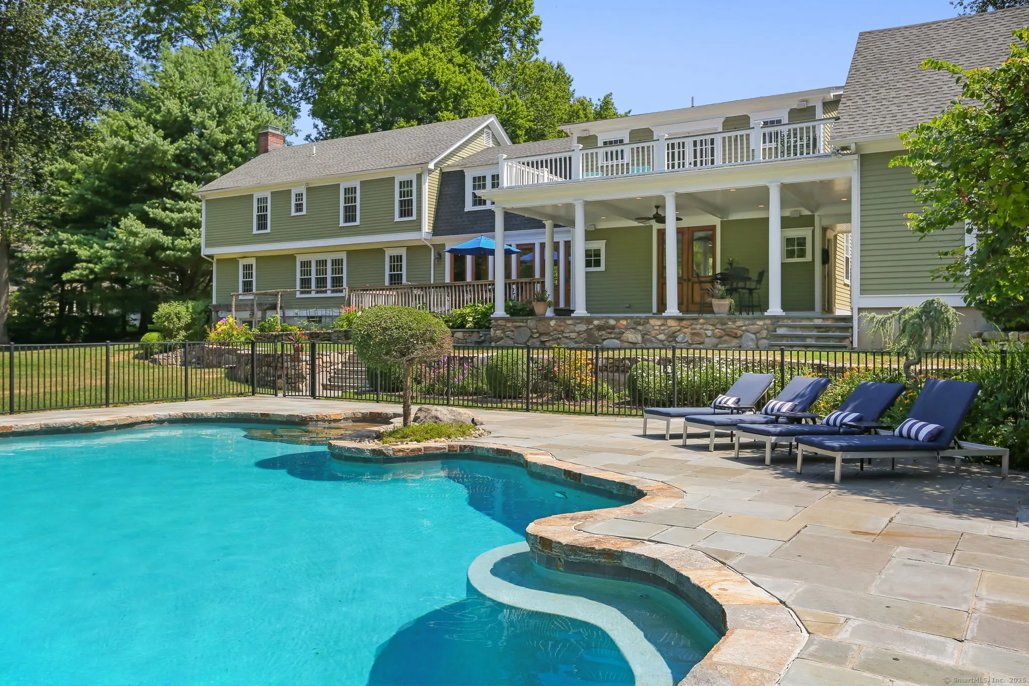 Welcome to 545 Shrub Oak Lane, an expanded Colonial on 2 private acres in Greenfield Hill. This home sits on a beautifully flat front yard that enhances its curb appeal. Fully renovated in 2012, the family room and oversized kitchen is the heart of the home. The custom designed kitchen has an 10 foot mahogany island with granite countertops, walk-in panty, and mahogany wood framed glass doors that create a seamlessly indoor-outdoor experience. The first level offers a formal living and dining room, an office and an expanded mudroom. Upstairs, the primary suite includes french doors to a private deck, a steam shower, a jacuzzi tub, walk-in closet, and a separate sitting room. Four additional bedrooms, two baths, and laundry room complete the upper level. The lower level offers a rec room, extra laundry, an office and ample storage. The oversized three-car garage with unfinished bonus space above is ideal for a in-law suite or future expansion. Outside is an entertainer's paradise, a custom designed lagoon-style pool with diving rocks, multiple bluestone patios, an elevated covered patio, two mahogany decks and an incredible recreational setup, including a full-size lighted basketball court, a turf area for bocce ball/batting cage, fire pit and more!