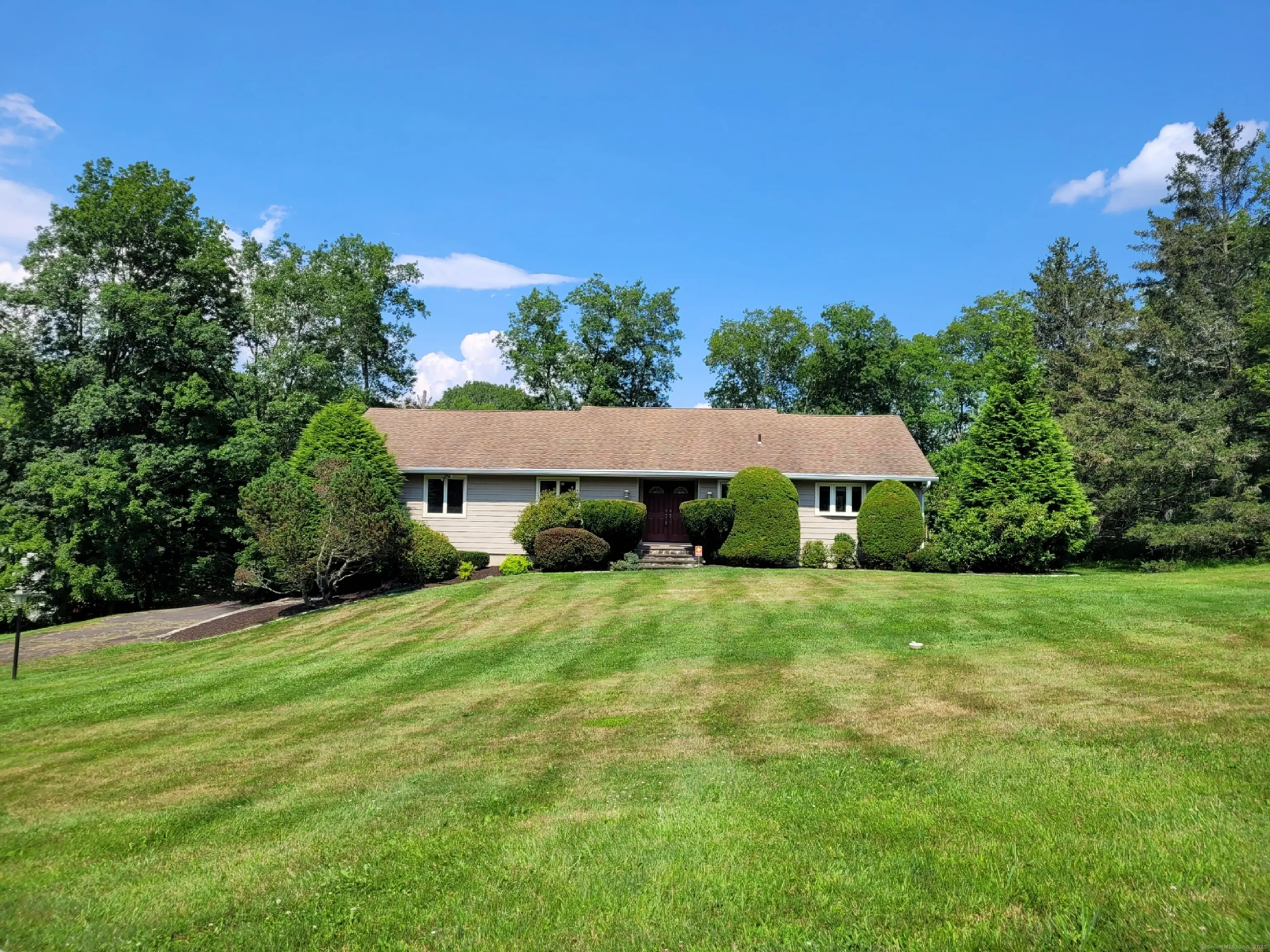 Welcome to 7 Carriage Lane, New Fairfield, Connecticut - tucked away on a quiet, picture-perfect cul-de-sac, this charming home is set back from the road & surrounded by other beautifully maintained properties, offering both privacy & tranquility. Step into the inviting two-story Foyer & immediately feel at home. The sun-filled living room features soaring Vaulted Ceilings, 2 Skylights & a cozy wood-burning Fireplace, creating the perfect space for relaxing or entertaining. From here, enjoy seamless access to the sunroom & 1 of 2 decks; ideal for outdoor gatherings or quiet moments. A huge Kitchen has an abundance of cabinet & counter space as well as a pantry & convenient writing desk. Easily access the 2nd Deck or Dining Room from here. The Formal Dining Room brings a touch of elegance with newly installed hardwood laminate flooring, detailed trim & 2 vertical windows offering serene views of the back lawn. A light-filled Sunroom showcases a cathedral ceiling & walls of windows with picturesque views, perfect for relaxation or enjoying your morning coffee. Generously sized Primary Bedroom features a walk-in closet with built-in shelves & an attached, private Full Bath. Bath offers a double sink, shower stall, built-in shelving, heat lamp & new toilet. Take in serene backyard views from the new vinyl windows. The 2nd Bedroom includes a walk-in closet with built-in shelving & ceiling fan. 3rd Bedroom features a large double closet & recessed overhead lights.