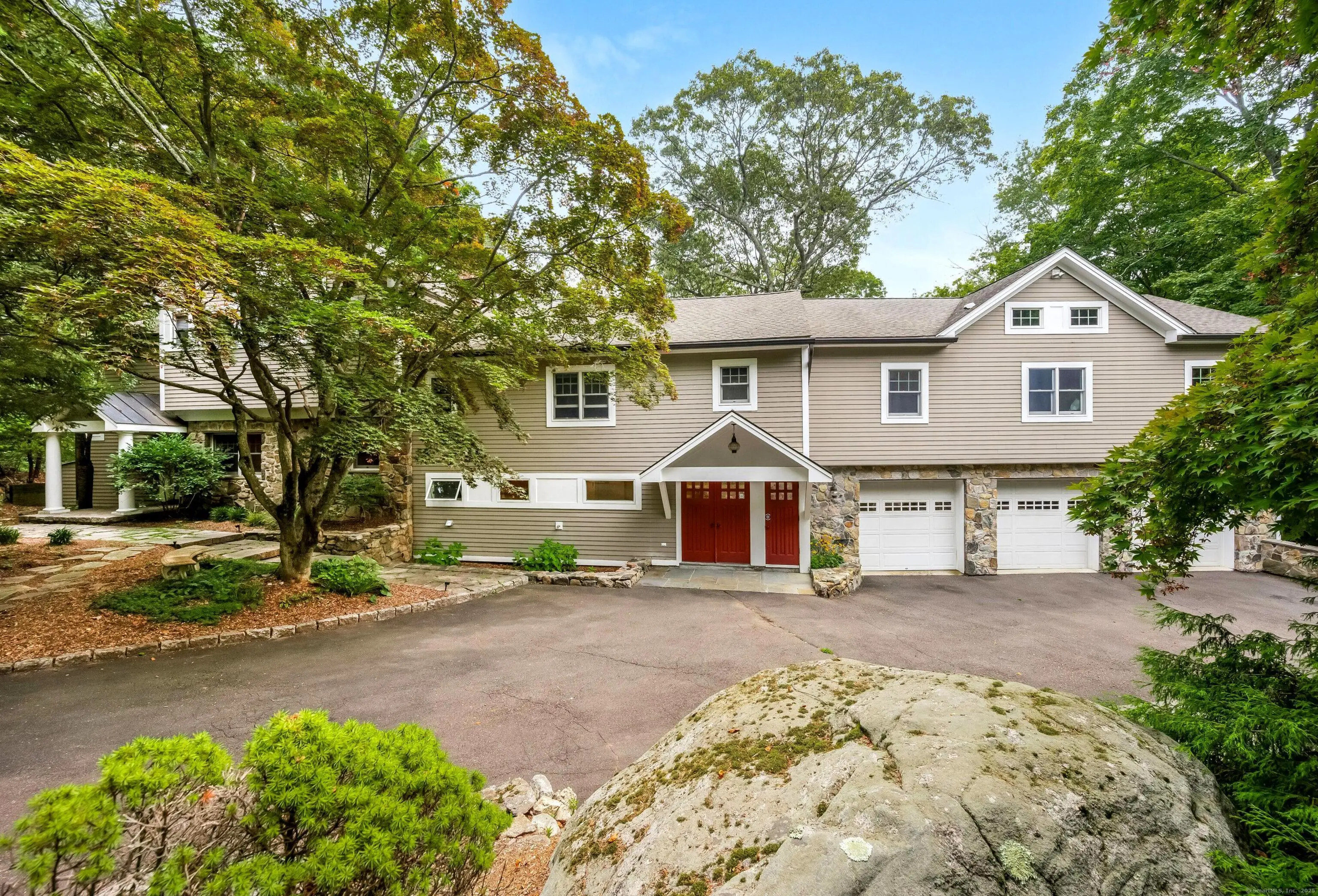 Ideal, sought-after North Stamford home with 5 bedrooms, 7(5/2) baths and 3-car garage, is move-in ready for you! A serene and private 1+acre with majestic stone outcroppings offers generous outdoor entertaining decks, patio and yard. Two primary bedroom suites, multiple/versatile work spaces, well-designed kitchen with high-end appliances and recently refinished hardwood floors & fresh paint throughout. Excellent schools and grocery/dining options are all within an 8-15 minute drive. Home was expanded and redesigned by a builder/owner in 2004/5 creating comfortable, functional, contemporary living throughout. Must-see quality!
