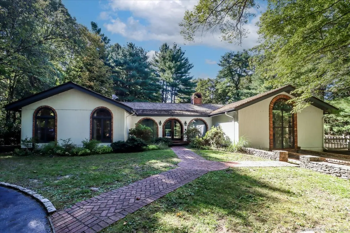 This Mediterranean masterpiece is situated on 3 private acres in one of the more convenient sections of beautiful Easton, CT! Its unique European design style offers a bucolic setting that is second to none! The interior compliments with rustic beams and curved archways throughout much of the main level. The oversized kitchen has plenty of room for a quiet meal around the island or a full family weeknight meal in front of the gorgeous stone fireplace and stove. Easy access to the large deck and pool through the sliders make summer bbq's and get togethers seamless! The formal dining area is large and sits adjacent to a sunken formal living room for holiday feasts and gatherings! The Primary Suite is steps away and features a vaulted ceiling, jacuzzi soaking tub, and access to the bright solarium through lovely French doors. The opposite side of the home has a wonderful family room with vaulted ceilings, a beautiful stained glass window, and access to a private balcony for peaceful afternoons with a book and cup of coffee. Three generously sized secondary bedrooms cap off the main level. Downstairs is a dedicated exercise room with attached sauna as well as a large play/rec area for your enjoyment! Convenient to the Merritt and shopping, this home is truly a diamond in the rough with nearly 4,000 square feet of total living space that offers endless possibilities!