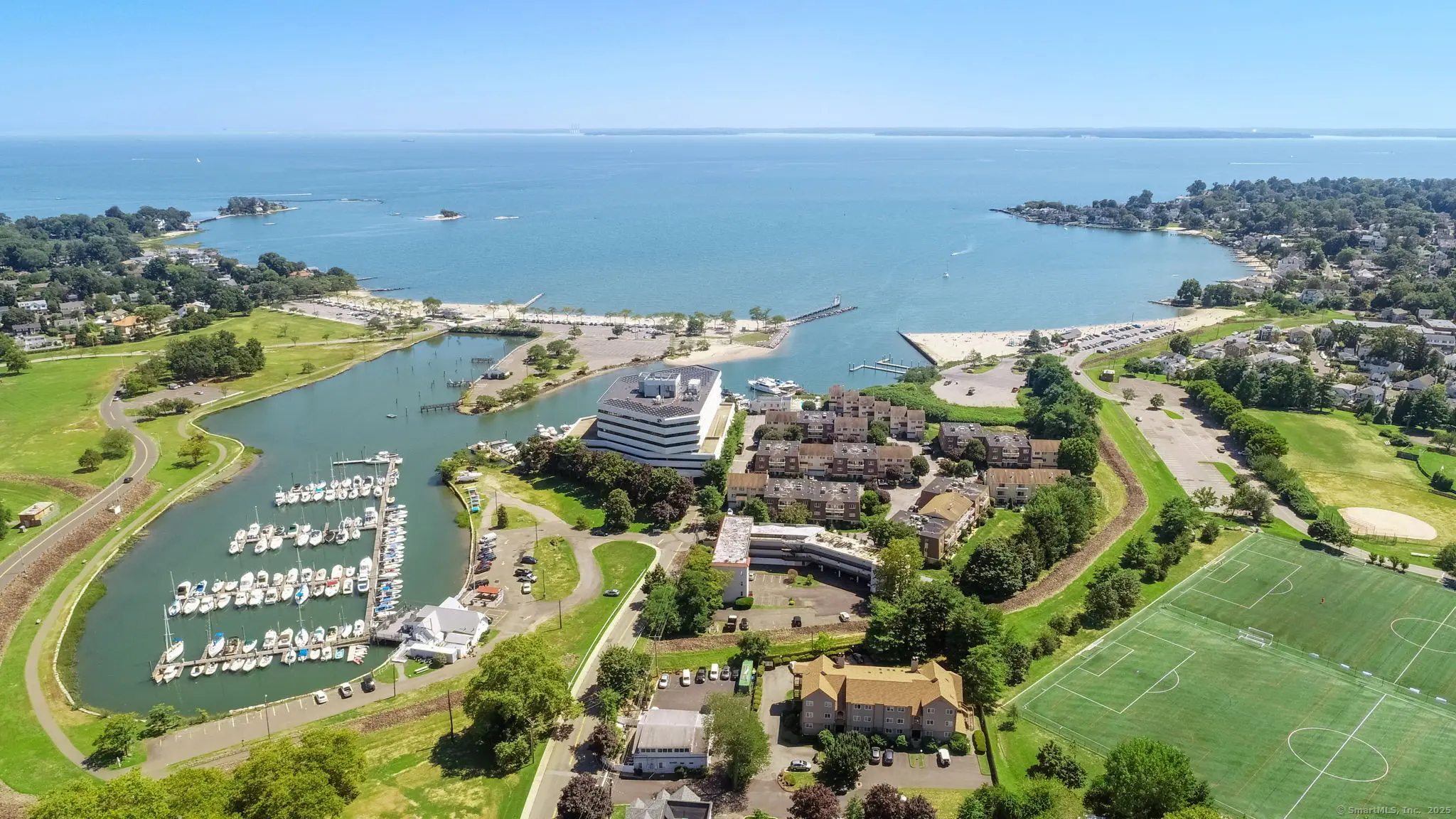 Marina Bay - the best of coastal living with everyday convenience! Designed for today's lifestyle, this 3-bedroom, 2.5-bath Shippan Point townhouse offers an open main level where the kitchen flows into the dining area and living room with fireplace, with sliders leading to a deck overlooking park-like grounds. Upstairs, the primary suite includes a renovated bath and private balcony, while two bedrooms share an updated full bath. The walkout lower level with patio extends your living space, ideal for a family room, playroom, or office. Hardwood floors, an attached garage, and a storage area add to the appeal. Community lifestyle perks include a clubhouse, pool overlooking the Sound, kayak racks, bike room, and grills. Ideally located steps from beaches and parks, and only minutes to Metro-North, Harbor Point, and downtown Stamford.