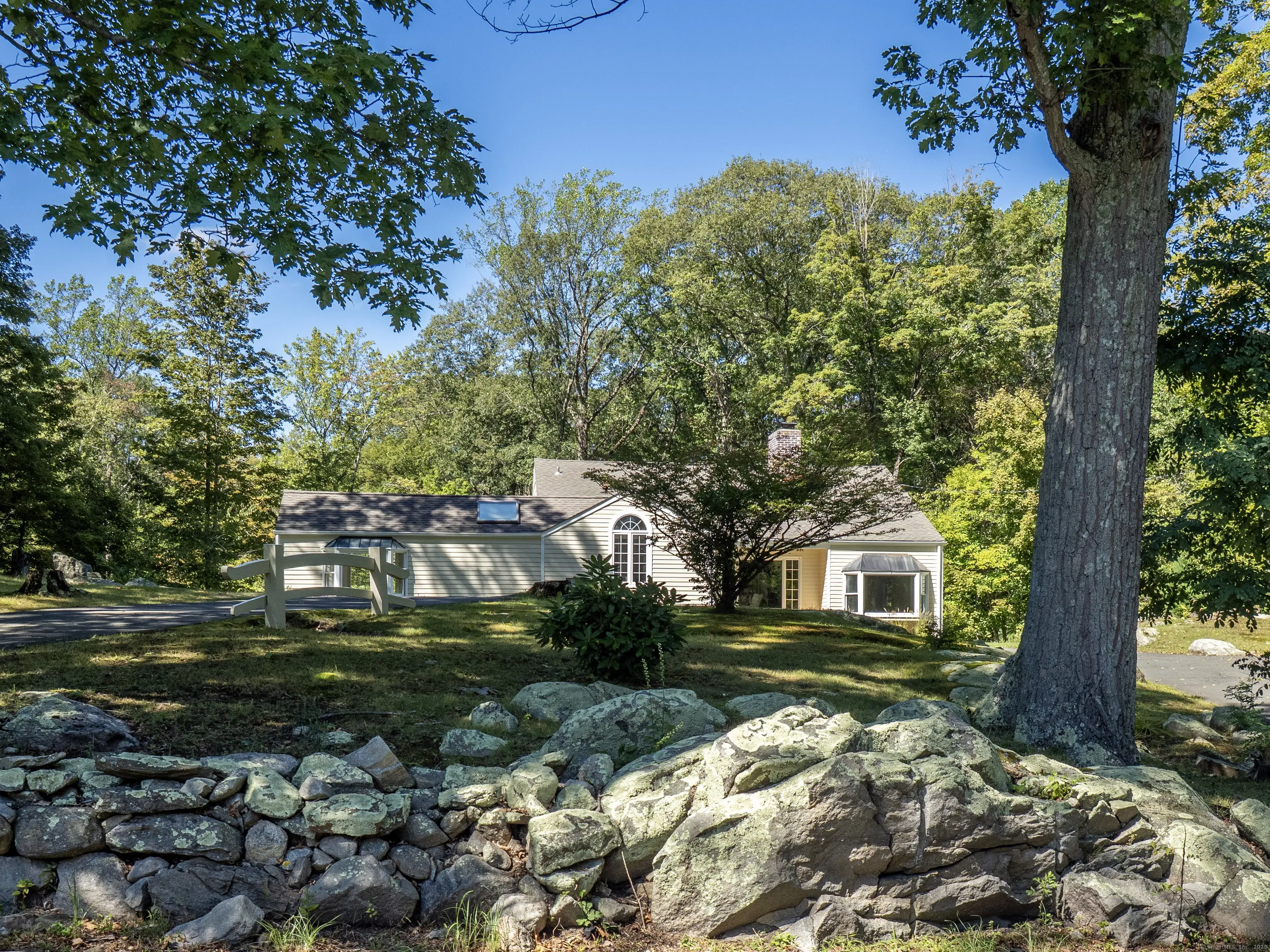 Location, Location, Location! Perfectly situated near top-ranked schools, trains, and Ridgefield's vibrant town center, this 3-4 bedroom home offers a flexible floor plan, recent updates, and a beautiful, private 2.4-acre setting. The sun-drenched main level offers fabulous space for relaxing and entertaining. The living and dining room flow seamlessly to the kitchen and cozy family room. A light-filled sunroom opens to a stone patio overlooking the picturesque backyard, perfect for outdoor dining and relaxation. Cathedral ceilings, oversized windows and exposed beams add to the character and warmth of this home. Upstairs, you'll find the spacious primary suite, two additional bedrooms, and a full bath. The lower level provides incredible versatility with a private en-suite bedroom or home office, a yoga/exercise room, and even a sauna! Recent improvements include freshly painted interiors, refinished hardwood floors, new lower-level flooring, and refreshed landscaping. Move right in and enjoy all Ridgefield has to offer-award-winning schools, a bustling town center, rich cultural and historical attractions, and a true small-town community vibe.