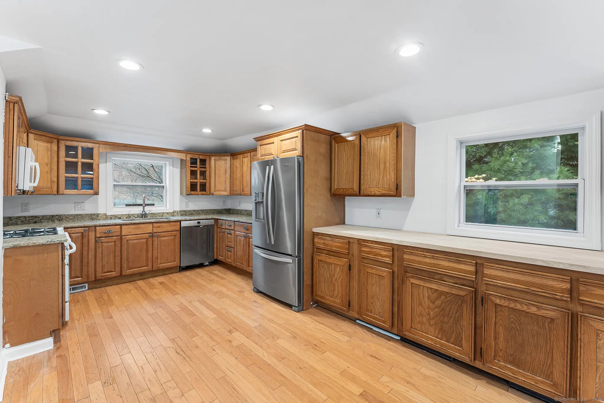 Beautifully updated Colonial in an excellent location, close to downtown Weston! This 3-bedroom, 2-bath Colonial features a spacious living room, large kitchen with granite countertops, and a formal dining room with a full bath and separate laundry room. The second level has two bedrooms, a shared bathroom and office area. The expansive primary bedroom is located on the 3rd level with full-sized windows and its own electric heating. This home boasts beautiful hardwood floors throughout with an instant tankless hot water heater, and natural gas heating. Enjoy the peaceful outdoors from the patio, which overlooks the lovely private yard with stockade fencing. Great flexible layout and convenient location near shops, dining, and major roads. With the excellent school system rated 2nd in CT; you won't want to miss out on this fantastic property!