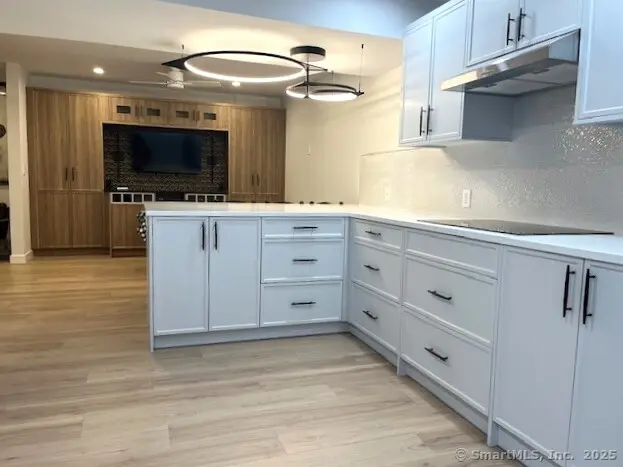 Just steps from Norwalk Hospital, this one-of-a-kind, ground-floor pied-a-terre combines privacy, sophistication and everyday convenience. Completely reimagined by the homeowners for their own enjoyment, every element reflects meticulous attention to detail. From the private entrance to the custom finishes throughout, everything has been thoughtfully designed. Inside, luxury vinyl floors set the stage for an inviting space to relax or entertain. The chef's kitchen is equipped with an induction cooktop, dedicated spaces for a hidden microwave/convection oven and toaster, and custom cabinetry deep enough to store folding chairs with ease. The spa-inspired bathroom features radiant heat, updated plumbing, an oversized shower with frameless glass doors, and clever touches like a pull-out drawer that keeps your hairdryer plugged in and ready. A sleek custom built-in wall unit provides abundant storage while making a sophisticated design statement that elevates the entire living space. Truly a rare and refined living experience.