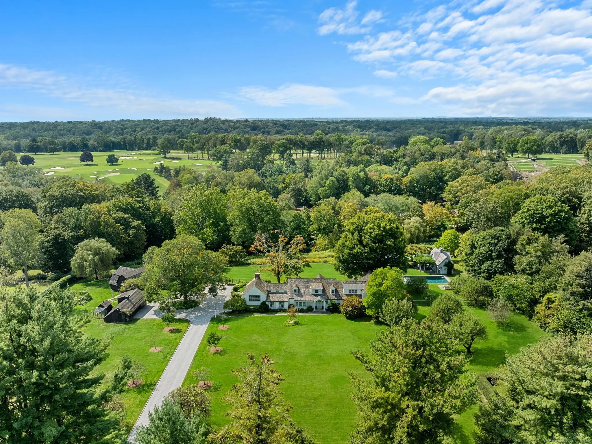 Feels like Litchfield. Lives like Fairfield. Tucked behind a private gate in Greenfield Hill, this estate offers what few properties can: sweeping space, true privacy, and serene beauty-just 60 miles from Manhattan. A long stone drive leads to the 1941 main residence, reimagined with timeless craftsmanship. Sunlight floods rooms finished with reclaimed wood beams and wide-plank floors. The chef's kitchen opens to elegant dining and living areas, with French doors to a bluestone terrace designed for candlelit dinners under the stars. A first-floor guest suite with a full bath provides flexibility and privacy, while upstairs, four additional bedrooms-including a serene primary suite-offer refined comfort and room to breathe. Beyond the home, the grounds unfold like a private resort. A two-story pool house features a full kitchen, bath, and playful loft. A climate-controlled barn houses a Trackman 4 golf simulator, sauna, and space for training or unwinding. Outdoors, discover a saltwater pool and spa, sport court, vegetable gardens, wildflower meadow with carved walking trails, orchard of apple, cherry, and peach trees, and a cider press-all with a private path leading to the Patterson Club. Whether for weekends or a lifetime, this estate elevates every season and every gathering-minutes from town, yet a world apart.