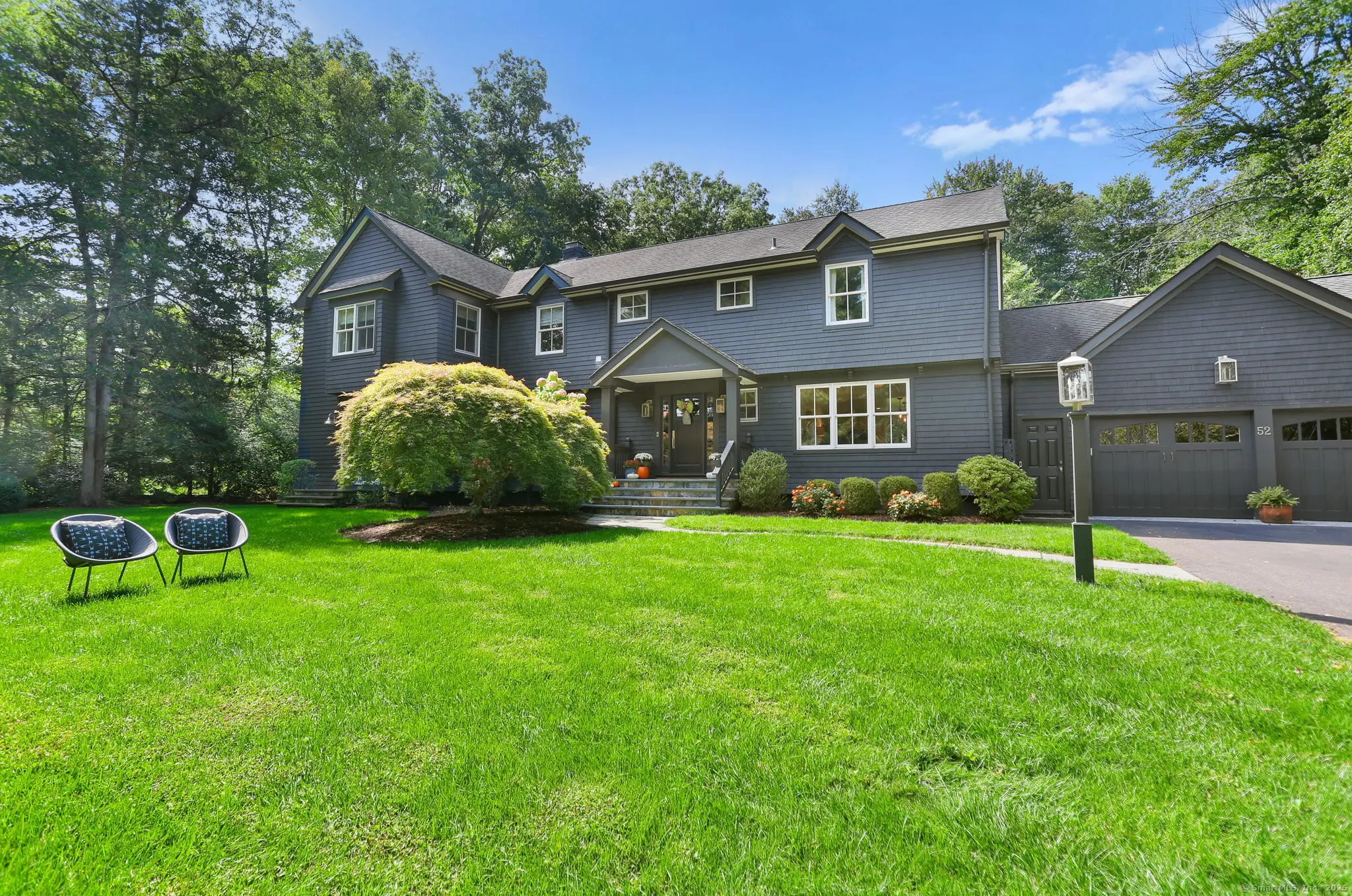 Located in the highly sought-after "Behind the Y" neighborhood, this expanded and beautifully renovated 5-bedroom Colonial is truly move-in ready. Sited on 1.25 acres of flat, open land, the home offers three finished levels of thoughtfully designed living space. The renovated chef's kitchen features a breakfast bar, eat-in dining area, and opens seamlessly to the family room with custom built-ins-perfect for modern living and entertaining. The impressive addition boasts 9 ft ceilings, a vaulted great room with a striking fieldstone fireplace, a private study, and a stylish wet bar. French doors lead to a covered porch overlooking the professionally landscaped pool and terrace. The spacious primary suite includes two walk-in closets and a spa-like bath. Enjoy the perfect blend of indoor and outdoor living-all with sidewalks to town, Waveny Park, the YMCA, and top-rated schools.