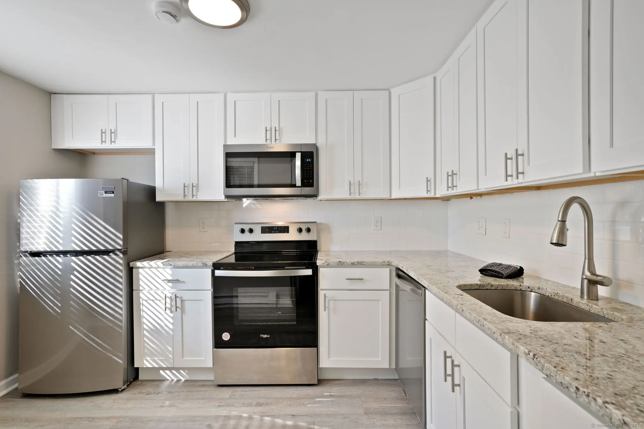 Renovated kitchen, bathroom and floors grace this immaculate one bedroom ranch style unit on the 1st floor in Brookside Condominiums. Large living room/dining area with sliding doors to the patio looking out on an expansive lawn. Bright sunny kitchen with new refrigerator and nearly new electric range, microwave and dishwasher with space for a small table or desk. Convenient location close to I-84, shopping, parks, hospitals and entertainment.