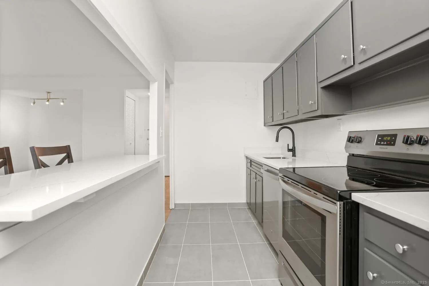 Discover a rare opportunity to own a beautifully updated studio unit in Cartright Towers, a well-maintained building on the Fairfield/Bridgeport line. Whether you're an investor seeking strong rental potential or a buyer looking for a move-in ready home, this immaculate unit checks every box. Enjoy the convenience and security of full-time doorman service, plus amenities including elevators, on-site laundry, and ample off-street parking in a gated lot on a quiet, residential street. This sun-filled studio has been fully renovated with gleaming new parquet flooring throughout and features a brand-new kitchen complete with white quartz countertops, stainless steel appliances, and a charming breakfast bar-perfect for casual dining or entertaining. The bathroom has been tastefully updated with classic white subway tile, a modern vanity, and elegant fixtures. Step outside to your own private, screened-in balcony, ideal for morning coffee, al fresco dining, or a peaceful work-from-home setup. Heat and hot water are included in the HOA fees, adding extra value and convenience. Located just minutes from downtown Fairfield, major highways, train stations, shopping, and parks, Cartright Towers offers the perfect blend of luxury, location, and lifestyle.